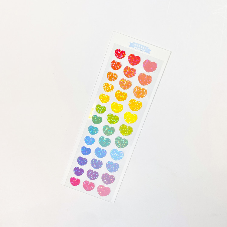 마고즈 큰홀로그램 프릴하트 컬러 씰스티커