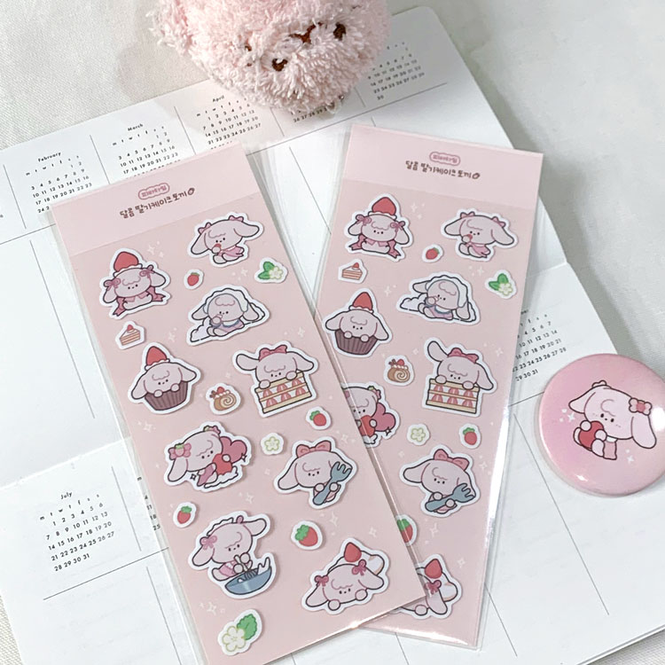 피바타임 달콤 딸기케이크 토끼 씰스티커