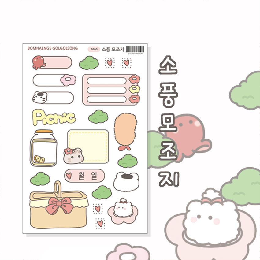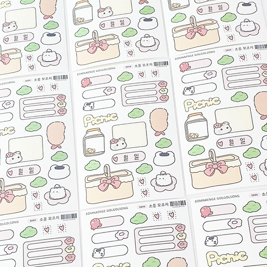 봄냉이골골송 소풍 모조지 스티커