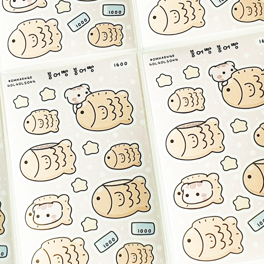 봄냉이골골송 붕어빵 붕어빵 미니 스티커