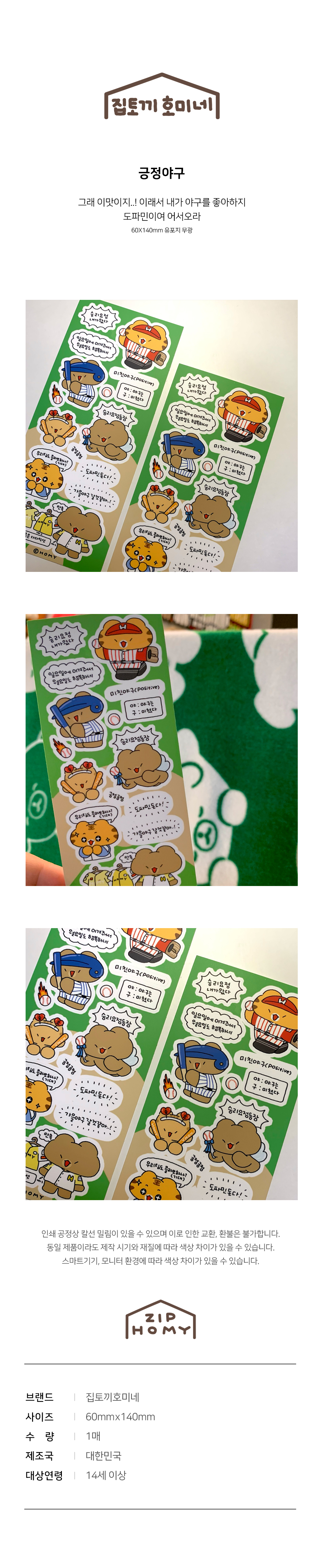 집토끼호미네 긍정야구 씰스티커
