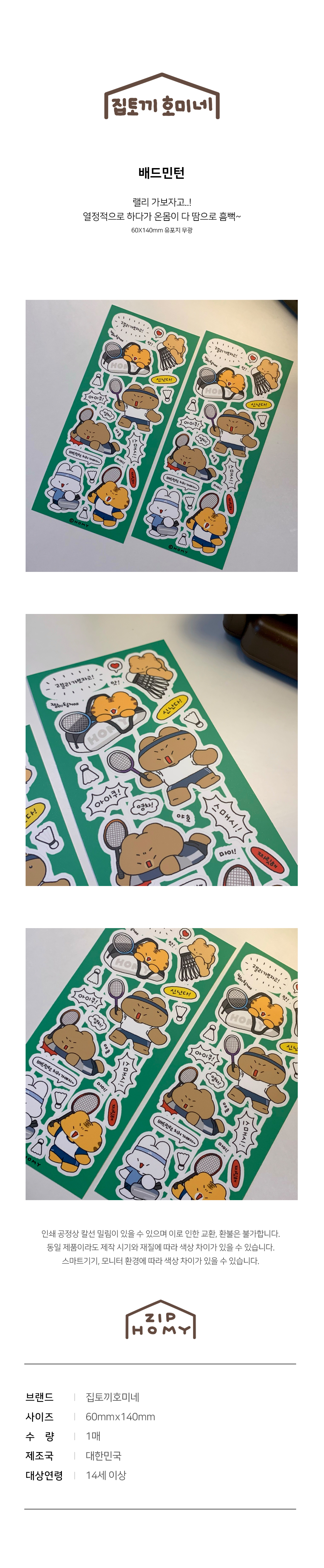 집토끼호미네 배드민턴 씰스티커